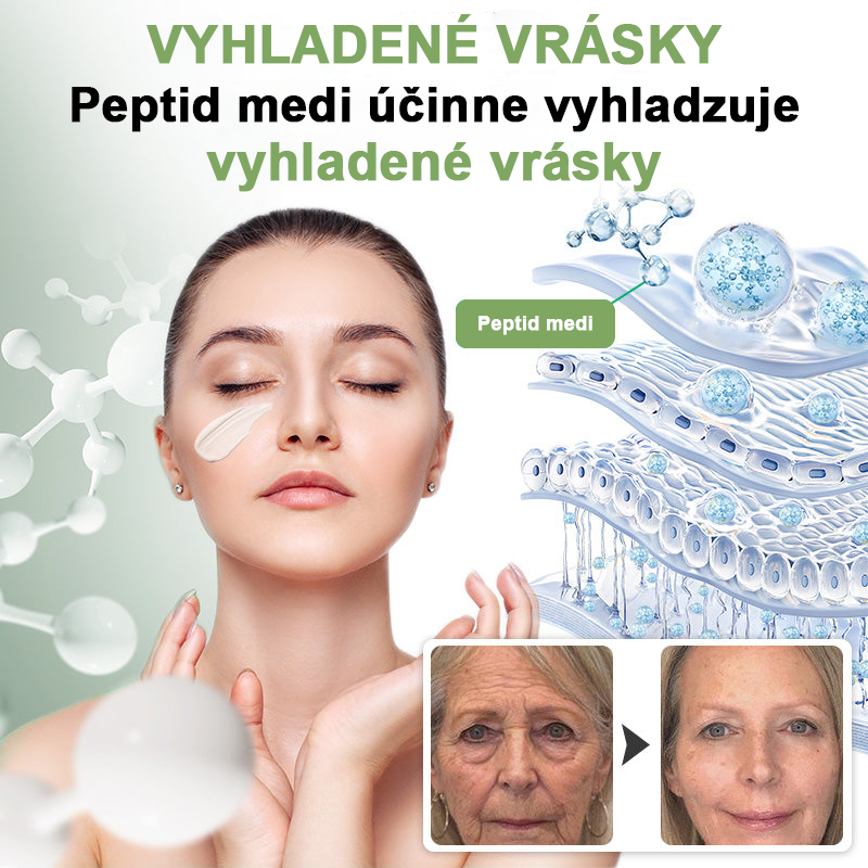 Peptid medi: Peptid medi je silná zložka proti starnutiu, ktorá podporuje syntézu kolagénu a elastínu. Pomáha zlepšovať pevnosť a pružnosť pokožky, podporuje regeneráciu buniek, redukuje výskyt vrások a chráni pred environmentálnym poškodením, poskytuje pokožke pŕs silnú podporu a opravu.